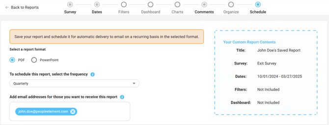 Save and schedule a Report Verbatim Comments Report (PDF Only)